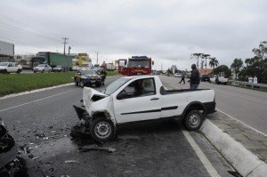 Um jovem de 28 anos ficou gravemente ferido em um acidente na Rodovia do Xisto, em Araucária, no início da tarde desta sexta-feira (21). Uma mulher também foi socorrida no local, com machucados moderados.