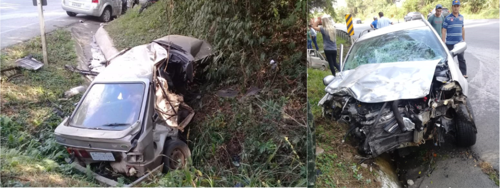 O outro acidente aconteceu no km 222, na comunidade do Faxinal dos Dias. A colisão envolveu um Renault Megane e um Escort (fotos). Uma pessoa que estava no Escort foi arremessada para fora do veículo com o impacto da batida e morreu na hora.