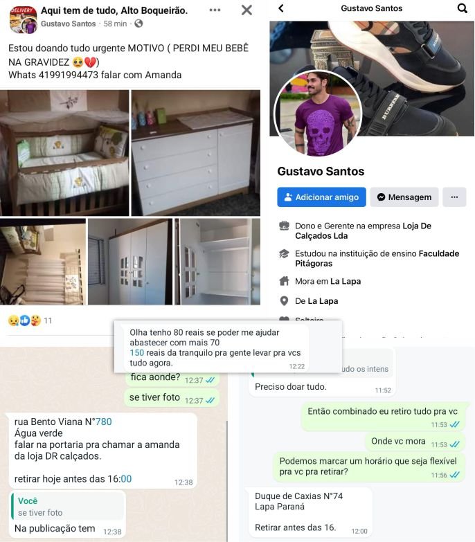 Uma moradora da Lapa entrou em contato com o Jornal MARCA na tarde de hoje (18) pedindo para realizar um alerta sobre um golpe em andamento na região. Publicações feitas em diversos grupos do Facebook afirmam que uma pessoa perdeu o bebê e que, por essa razão, estaria doando todos os móveis comprados para a criança, como berço, guarda-roupas, etc.