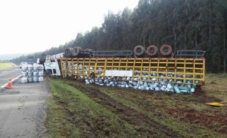 Uma carreta carregada com botijões de gás tombou na BR-376, em Ponta Grossa, na região dos Campos Gerais do Paraná, na manhã da última sexta-feira (10). Conforme a Polícia Rodoviária Federal (PRF), o caminhoneiro viajava sentido Ponta Grossa quando perdeu o controle da direção e tombou o veículo.