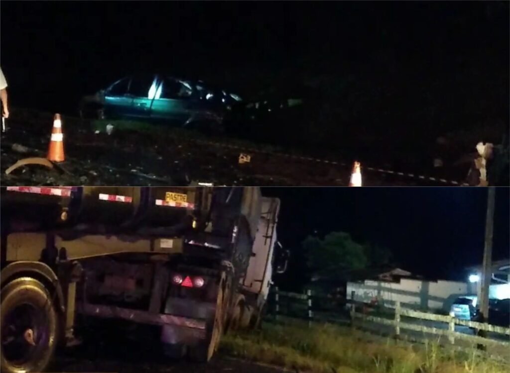 Ao Corpo de Bombeiros, o motorista do caminhão disse que o automóvel acabou invadindo a pista contrária.