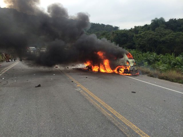 Na Scenic havia duas mulheres; uma delas, Rosa Maria Reche Solar, de 62 anos, morreu enquanto era transportada de helicóptero da Polícia Militar de Santa Catarina . Três ladrões morreram: um no local, um na UPA de Garuva e outro no Hospital São José. Eles foram identificados como Otávio Mares da Silva, de 27 anos; Jonathan Santos Montarini, 20; e Cleiton de Farias, 24. O quatro envolvido foi encaminhado ao hospital com ferimentos graves.