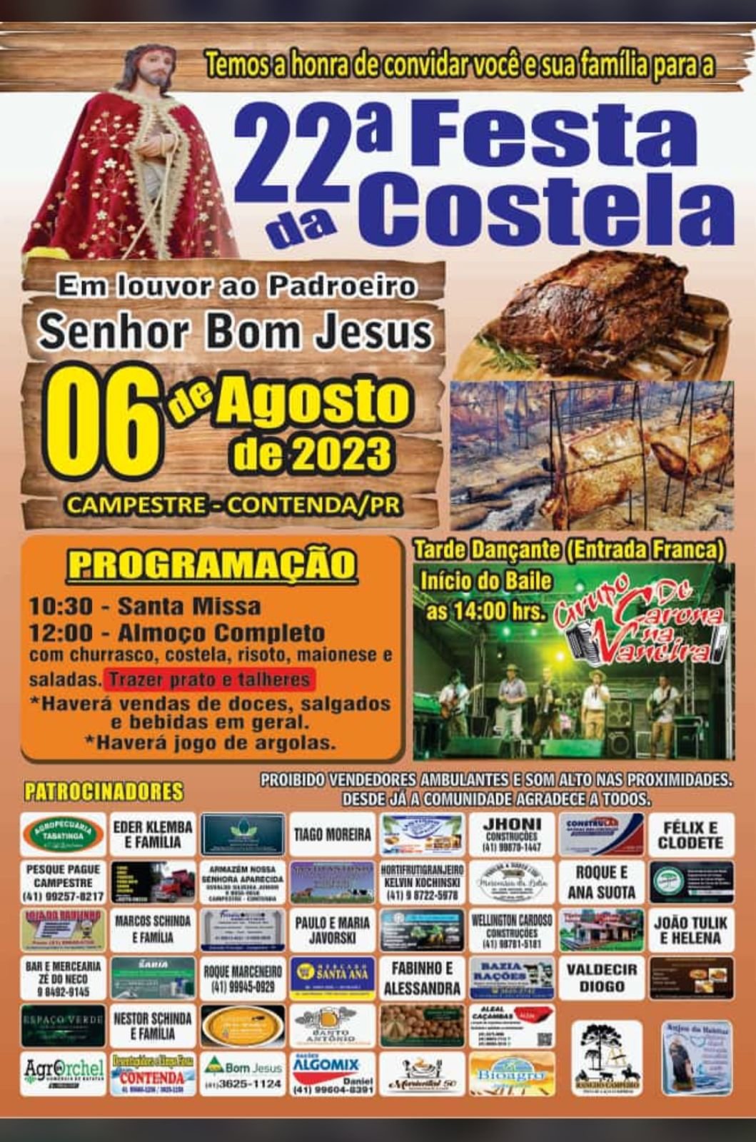No próximo dia 06 de agosto a comunidade de Campestre, em Contenda-PR, sedia mais uma edição da festa local, a 22.ª Festa da Costela. Junto à tradicional festa promovida pela comunidade da região ocorrerá a 3.ª edição da Etapa Campestre de Mountain Bike (MTB), idealizada por moradores locais e integrantes da equipe Roda Presa – fundada em 2016 por um grupo de amigos com o intuito de incentivar a prática esportiva.
