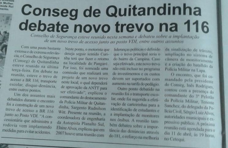 Foto à esquerda: matéria sobre o Conseg de Quitandinha no jornal O Regional.