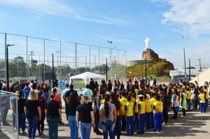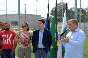 Além de Alexandre Curi e do Prefeito Mostarda, estiveram presentes na solenidade de inauguração a primeira dama e secretária de Promoção e Assistência Social, Ângela Mayer, o chefe de gabinete Fernando Gomes, secretários da Prefeitura e ainda os vereadores Arcílio Mazur, Márcio Rogério Francisco, Alexsandro Miguel Tulik de Freitas e João Fernandes Ribeiro. Quem fez a festa e inauguraram o campinho de fato foram alunos da escola João Franco.