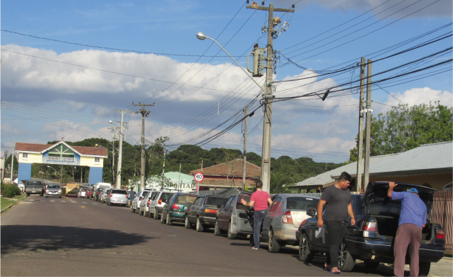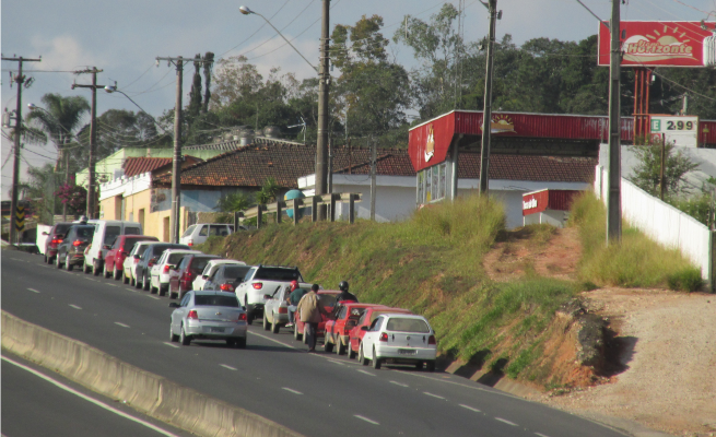 Para abastecer no Posto Novo Horizonte, motoristas aguardam no acostamento da Rodovia. Foto: Alexsandro Wojcik.