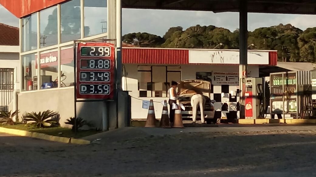 Comentários de que o litro da gasolina está custando R$ 8,88 em um posto de combustíveis de Contenda estão se espalhando no Facebook e em grupos do WhatsApp no momento em que motoristas formam as filas para abastecer.