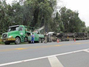 Na manhã desta quarta-feira (24) ocorreu mais um acidente no KM 179 da Rodovia do Xisto, entre Contenda e Lapa. Eram cerca de 8h45 da manhã quando uma carreta que estava carregada com peças e rodas de automóveis tombou no trecho de curva fechada existente no local.