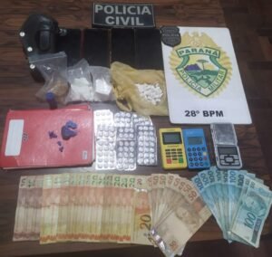 No cumprimento dos mandados a polícia apreendeu ainda cocaína, maconha, crack, R$ 1.590,00 em espécie, uma balança de precisão, duas maquinetas para cartão de crédito/débito, um coldre, 134 comprimidos de medicamento popularmente conhecido como rebite, quatro celulares e uma munição intacta calibre 16 (foto abaixo).