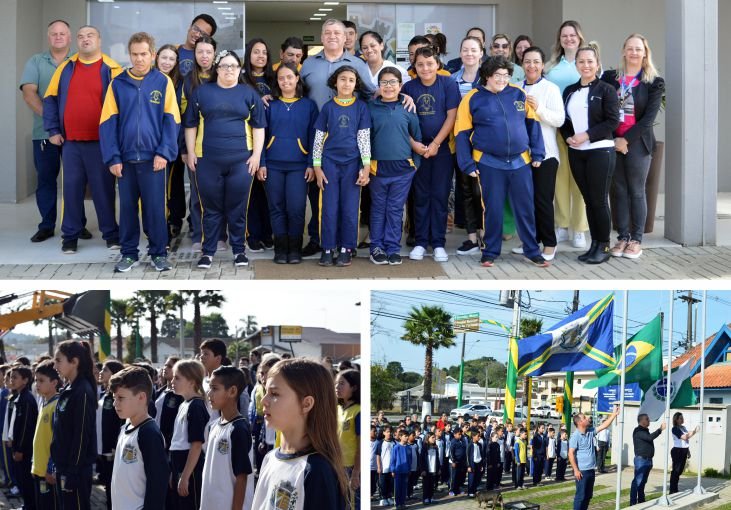 Na terça (5) foi a vez dos estudantes das escolas Professora Vanilda Dzierwa, Leonor de Moura Carvalho, Rui Barbosa, Vereador Antônio Borkovski, Colégio Estadual Miguel Franco Filho, Escola Alaor Cordeiro de Souza, além dos projetos Adolescentro e Anjo da Guarda. As bandeiras foram hasteadas pelo prefeito Mostarda, pela primeira dama e secretária de Promoção e Assistência Social, Ângela Mayer de Souza Digner e o vereador